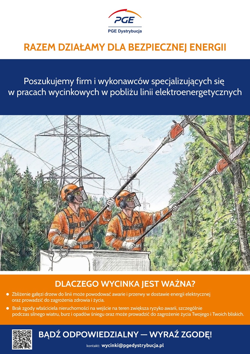 W związku z planowanymi pracami zwracamy się w imieniu Operatora z prośbą do właścicieli nieruchomości, przez które przebiegają linie elektroenergetyczne, o wyrażenie zgody na wejście ekip wykonawczych na teren posesji. Uzyskanie takiej zgody jest niezbędne do przeprowadzenia prac eksploatacyjnych.
