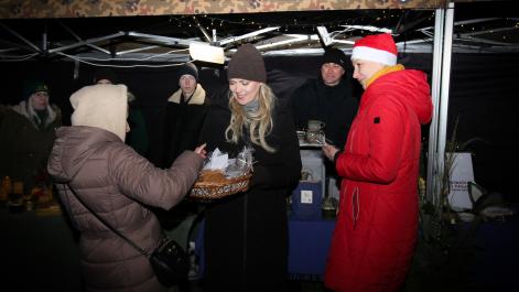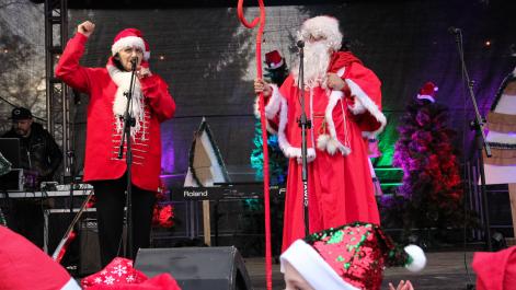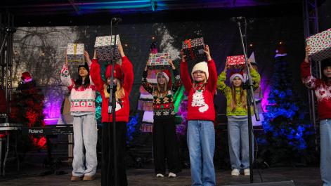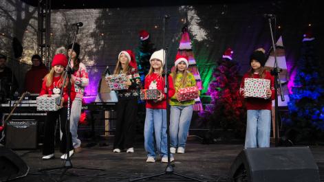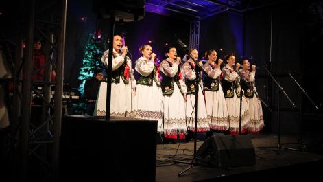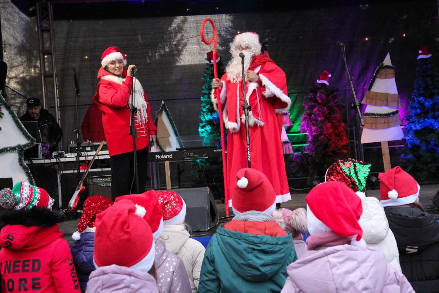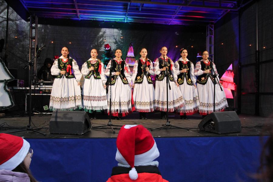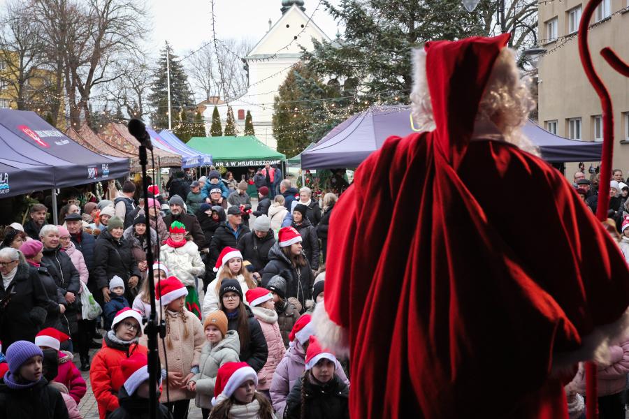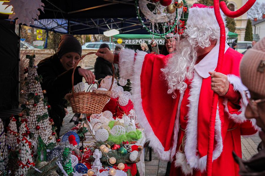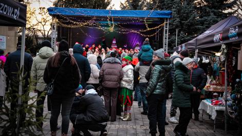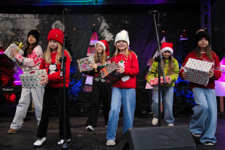 Mieszkańcy Hrubieszowa licznie odwiedzili Kiermasz Świąteczny, który był okazją do wspólnego spędzenia czasu, zakupów świątecznych oraz skorzystania z bogatego programu artystycznego. Na scenie zaprezentował się debiutujący chór Szkoły Podstawowej nr 2 w Hrubieszowie, który po raz pierwszy wystąpił przed tak liczną publicznością. Wystąpiły również solistki Zespołu Pieśni i Tańca Ziemi Hrubieszowskiej oraz zespół tańca nowoczesnego działający przy Hrubieszowskim Domu Kultury, zapewniając widzom różnorodny i atrakcyjny program artystyczny. Podczas kiermaszu swoje stoiska zaprezentowało 20 wystawców oferujących rękodzieło, świąteczne dekoracje oraz wyjątkowe, ręcznie wykonane upominki. Najmłodsi uczestnicy wydarzenia mogli wziąć udział w konkursach i zabawach, spotkać Świętego Mikołaja rozdającego cukierki oraz poczęstować się pierniczkami przygotowanymi przez Burmistrz Miasta Hrubieszowa, Martę Majewską. Całość dopełniała świąteczna kawiarenka HDK, w której serwowano m.in. gorącą czekoladę oraz aromatyczną herbatę, idealne na zimowe popołudnie. Dziękujemy wszystkim artystom, wystawcom oraz mieszkańcom za udział w wydarzeniu i wspólne stworzenie miłej, świątecznej atmosfery na placu przy Hrubieszowskim Domu Kultury.