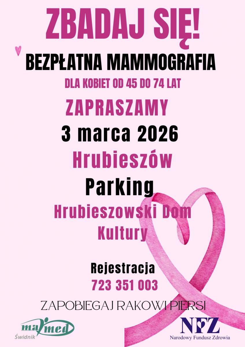 Już 3 marca 2026 roku w Hrubieszowie odbędzie się ważna akcja prozdrowotna pod hasłem „Zbadaj się!”. Na parkingu przy Hrubieszowskim Domu Kultury stacjonować będzie mammobus, w którym kobiety będą mogły poddać się profesjonalnemu badaniu piersi.