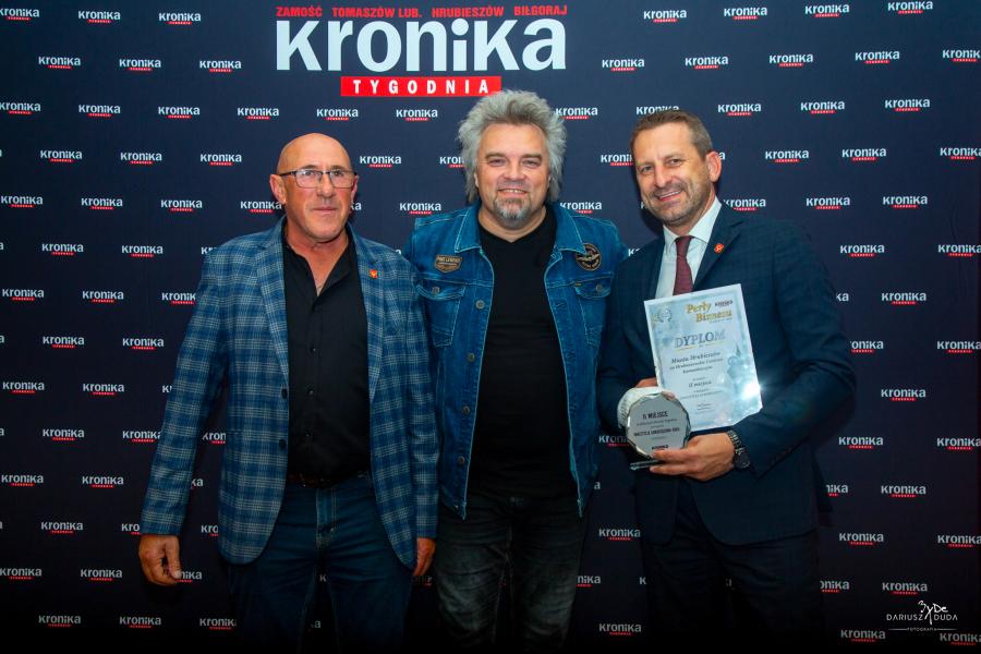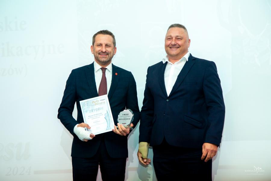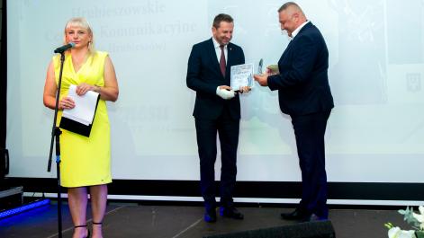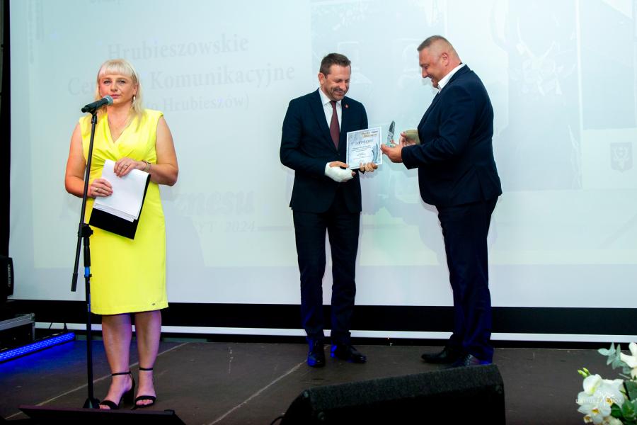 Hrubieszów ponownie znalazł się w gronie najlepszych w prestiżowym plebiscycie „Perły Biznesu” organizowanym przez Kronikę Tygodnia. W tegorocznej edycji Hrubieszowskie Centrum Komunikacyjne zajęło drugie miejsce w kategorii „Inwestycja samorządowa 2025”. Nagrodę w imieniu miasta odebrał Paweł Wojciechowski Zastępca Burmistrza Hrubieszowa. Hrubieszowskie Centrum Komunikacyjne to nowoczesny, ekologiczny i funkcjonalny węzeł przesiadkowy, który stał się wizytówką miasta. Obiekt zaprojektowany został z myślą o bezpieczeństwie, wygodzie oraz przyjaznym otoczeniu dla mieszkańców i gości odwiedzających Hrubieszów. To kolejne wyróżnienie dla samorządu w tym plebiscycie. W 2023 roku pierwsze miejsce w kategorii „Inwestycja samorządowa” zdobyła Pływalnia FALA. Warto również odnotować, że w kategorii „Produkt roku” nominację otrzymały naturalne soki jabłkowe i jabłkowo-gruszkowe pochodzące z gospodarstwa sadowniczego Zdzisława Szczęka. Sama nominacja stanowi duże wyróżnienie i świadczy o docenieniu lokalnych producentów. Gratulujemy wszystkim nagrodzonym i nominowanym w tegorocznej edycji „Pereł Biznesu”. To powód do dumy dla całej społeczności Hrubieszowa oraz dowód, że inwestycje i inicjatywy podejmowane w naszym mieście spotykają się z uznaniem i pozytywną oceną.