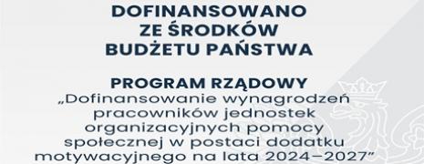 "Dofinansowanie wynagrodzeń pracowników jednostek organizacyjnych pomocy społecznej w postaci dodatku motywacyjnego na lata 2024-2027"
