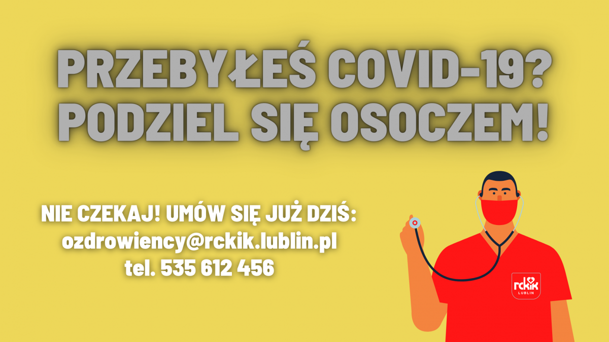 Potencjalni dawcy proszeni są o kontakt telefoniczny lub mailowy, co pozwoli dokonać wstępnej oceny braku przeciwwskazań do oddania osocza oraz ustalić termin i miejsce pobrania: tel: 535 612 456 , e-mail ozdrowiency@rckik.lublin.pl