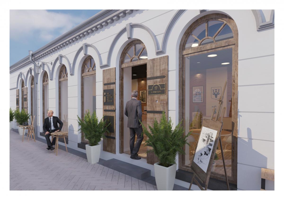 Na fotografiach przedstawiona jest wizualizacja lokali będących własnością Gminy Miejskiej Hrubieszów – w ramach projektu „Rewitalizacja Śródmieścia Hrubieszowa szansą na eliminację zjawisk kryzysowych oraz ożywienie społeczno -gospodarcze miasta” następuje przebudowa, remont i adaptacja lokali usługowych położonych w Hrubieszowie przy ul. Rynek „Sutki” 15 i 17.